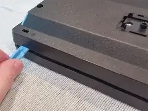 Снимите плоский гибкий кабель платы кнопки питания с платы блока питания под металлической крышкой.