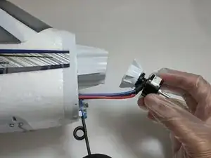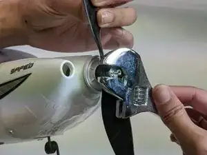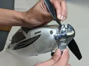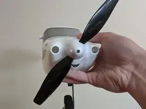 Удерживая пропеллер другой рукой, открутите один винт Phillips, фиксирующий передний носовой наконечник.