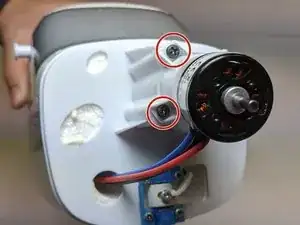 Удалите четыре винта Phillips и аккуратно извлеките сломанное крепление мотора.