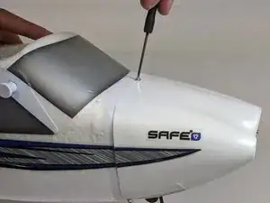 Прикрепите обтекатель обратно к корпусу самолёта тремя ранее снятыми винтами.