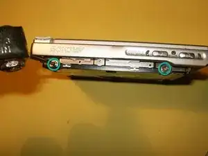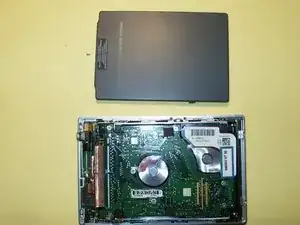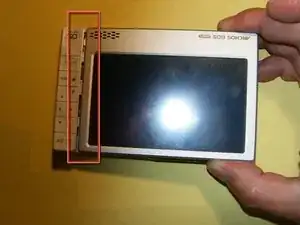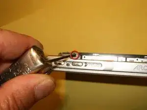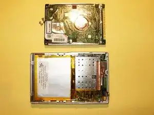 Аккумулятор очень плотно расположен внутри Archos. Чтобы освободить место, необходимо снять верхнюю и нижнюю направляющие жёсткого диска.
