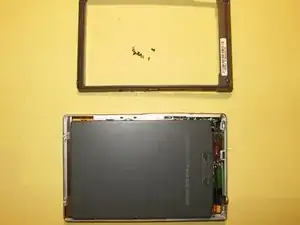 Дисплей защёлкнут с торца, где расположен док-коннектор. Этот край можно освободить первым, поддев ногтями между рамой и дисплеем.