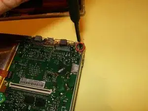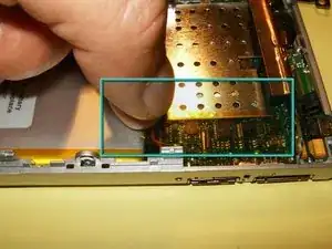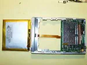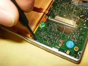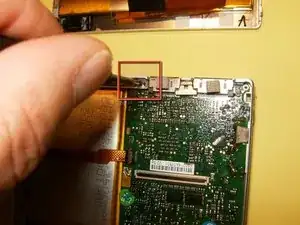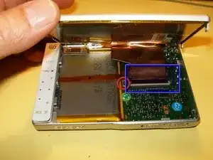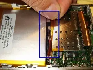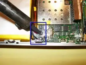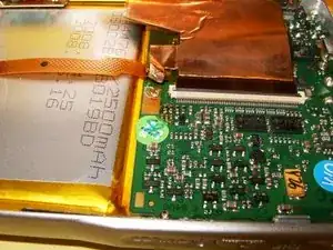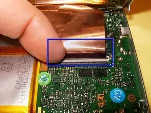 Ослабьте плёнку, идущую от аккумулятора к плате логики. Её нельзя полностью удалить, но её нужно отвести с платы.