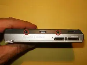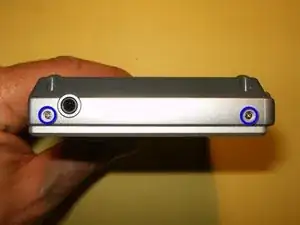 Удалите два винта с крестообразным шлицем (Phillips) в верхней части.