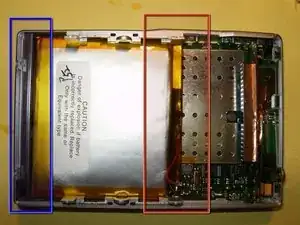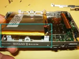 Сдвиньте аккумулятор в сторону платы логики. Он только-только освободится от задней части корпуса.
