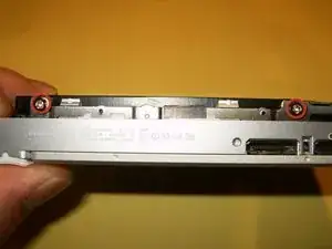 Удалите два винта с крестообразным шлицем с задней пластины жёсткого диска.