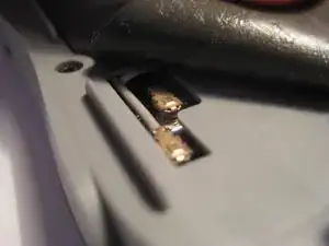 Приподнимите угол и обратите внимание на два разъёма, идущие к плате.