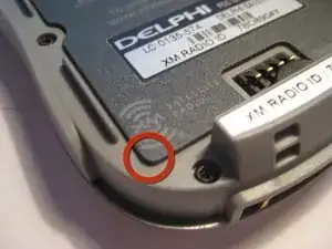 Под батареей находится магнитная прокладка, показанная красным, которая экранирует помехи батареи для приёма спутниковой антенны XM.