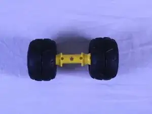 Установите новое колесо на машинку и вкрутите винт в центр колеса.