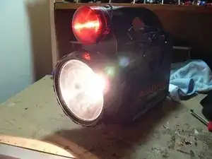 Это основная лампа для ориентира. Она удерживается в рефлекторе пружинным зажимом, как показано. Отсоедините чёрный провод, чтобы облегчить доступ.