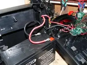 Чтобы установить новый аккумулятор, подключите проводку заново, помня, что красный провод идёт к красной клемме. Я допустил ошибку и вставил аккумулятор наоборот, но устройство всё равно работает. Это довольно тяжёлая и громоздкая деталь.