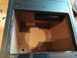 Крышка динамика закреплена в каждом углу стойкой, которую легко ослабить, приложив силу рукой или используя плоский тупой предмет. Старайтесь не повредить ткань.
