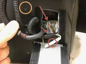 - При подключении 3 проводов и 1 шланга с шага 3 УБЕДИТЕСЬ, что они не зажаты между верхней и нижней частями. В противном случае воздух не будет поступать к подножкам.