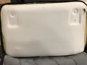 Пена приклеена к пластиковой крышке. Старайтесь не порвать её, используйте острое лезвие, чтобы избежать повреждений.