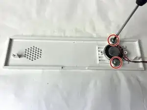 С помощью отвертки Phillips #0 открутите два винта 10,0 мм, фиксирующие динамик.