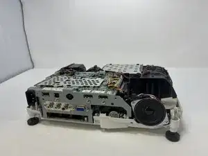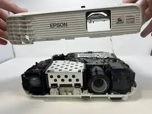 Полностью снимите верхнюю половину корпуса проектора и отложите её в сторону.
