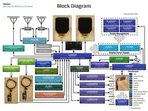 Предполагаемая блок-схема, основанная прежде всего на доступных технических документациях и наблюдаемой реализации в изделии.