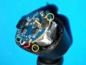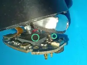 Нанесите немного супер-клея на штифт, который был отрезан в начале этого руководства (зеленая метка), чтобы снова зафиксировать печатную плату.