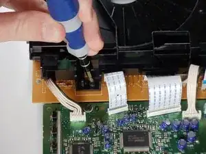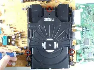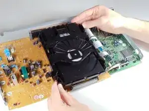 Аккуратно поднимите лоток DVD-привода с материнской платы.