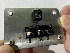 Оранжевая стрелка указывает на правый вывод, вывод над выводом заземления.