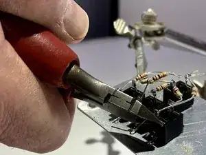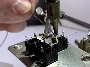 Также при пайке резисторов важно, чтобы резисторы не касались друг друга. Если резисторы соприкоснутся, это вызовет акустическую обратную связь и испортит качество прослушивания.