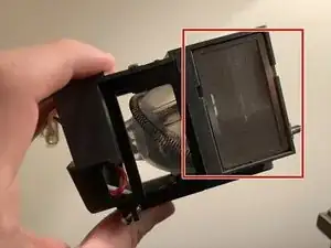 Используйте пылесос, чтобы осторожно удалить пыль с переднего и заднего экранов корпуса лампы.