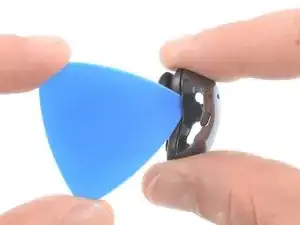 Поместите конец открывающей лопатки между пластиковыми корпусами на изогнутой внутренней стороне гарнитуры.