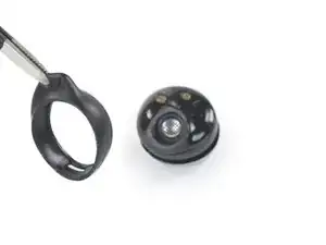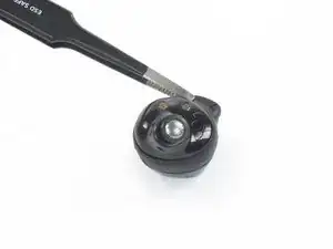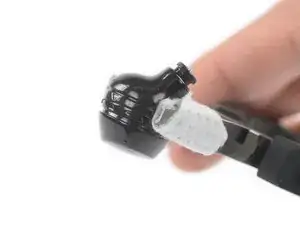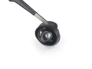 Используйте пальцы или пару тупых пинцетов, чтобы снять резиновую крылышко гарнитуры, потянув её вверх и сняв с гарнитуры.