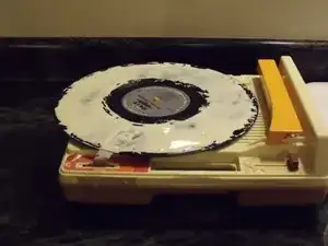Поместите пластинку на проигрыватель и включите его, чтобы пластинка начала вращаться.