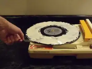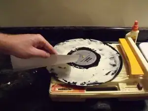 В этом руководстве показано, как отремонтировать поврежденную игровую поверхность LP пластинок с помощью техники, которая включает нанесение древесного клея. Это улучшит качество звука пластинки и идеально подходит для старых, изношенных записей.