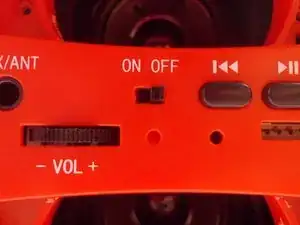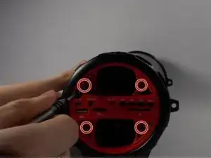 Вытащите красную интерфейсную пластину, чтобы обнажить провода, ранее скрытые между чёрной передней панелью и красной интерфейсной пластиной.