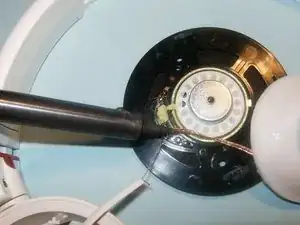 Вот две жилы, припаянные обратно к плате драйвера. Проверьте наушники перед сборкой — это подтвердит, что пайка выполнена правильно.