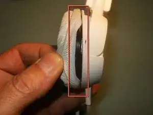 Снимите амбушюр, аккуратно потянув за него. Он просто зафиксирован в зазоре между драйвером и корпусом.
