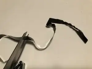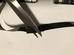 Вырежьте сморщенные и повреждённые участки ленты ножницами.