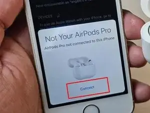 Когда анимация настройки появится на вашем устройстве, нажмите «Подключить», чтобы сопрячь левый AirPod.