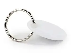 Удалите все оставшиеся пластиковые частицы с AirTag перед установкой кольца ключей.
