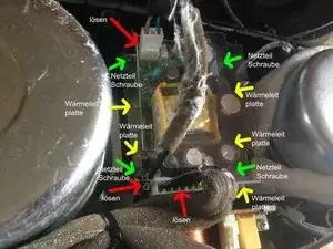 Ослабьте и удалите 3 кабеля (показаны красными стрелками на картинке)
