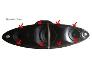 Удалите 8 винтов с крестообразной головкой с передней части устройства.