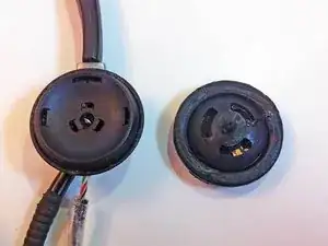 Чтобы разобрать гарнитуру, снимите маленькую заглушку, чтобы получить доступ к винту с крестообразным шлицем.
