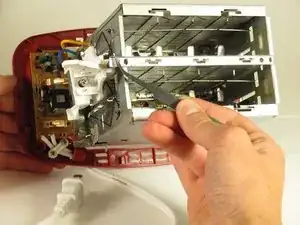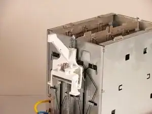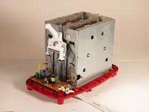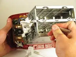 Чтобы начать ремонт пружины рычага, снимите верхнюю металлическую пластину тостера.