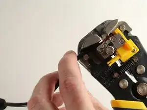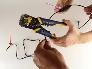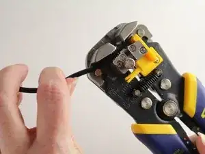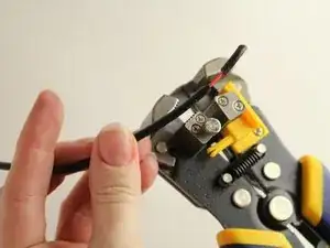 Используйте стрипперы, чтобы снять изоляцию с красного и чёрного проводов до медного сердечника.