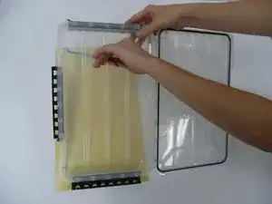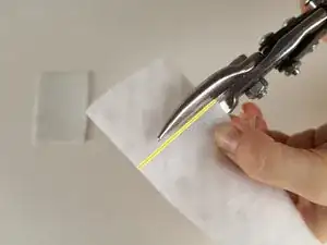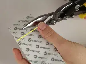 Используйте ножницы повышенной прочности (были использованы ножницы по металлу), чтобы отрезать крючковую сторону прочной липучки.