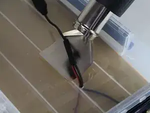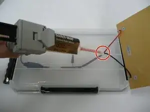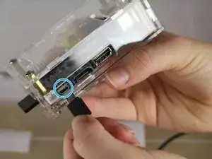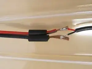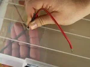 Снимите этот кусок резины с конца провода, чтобы получить доступ к меньшим чёрному и красному изолированным проводам.