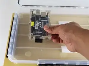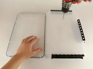 Откройте прозрачную пластиковую коробку и положите её лицевой стороной вниз на поверхность, пригодную для сверления.
