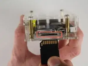 Он должен находиться на длинном краю с картой памяти слева и Wi‑Fi модулем справа.