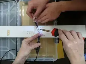 Пайте над куском обрезной древесины или другой подложкой. Не паяйте над открытой коробкой во избежание падения припоя внутрь.