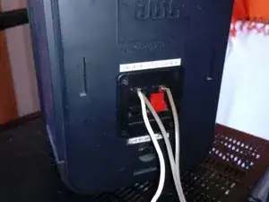 Вставьте другой конец кабеля в заземляющий разъем одного из динамиков