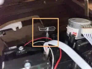 Из любопытства посмотрите последнюю фотографию, чтобы увидеть, как выглядят скобы. Манипулировать всем механизмом, как я описываю в следующем шаге, предпочтительнее, чем деформировать и снимать скобу, чтобы потом поднимать весь механизм прямо вверх.