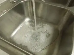 Наполните раковину тёплой водой на глубину примерно 7–10 см.