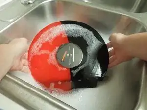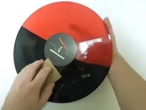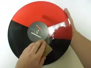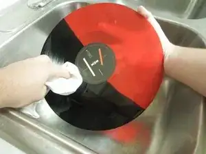 Протерите пластинку безворсовой тканью или щёткой для чистки пластинок круговыми движениями.
